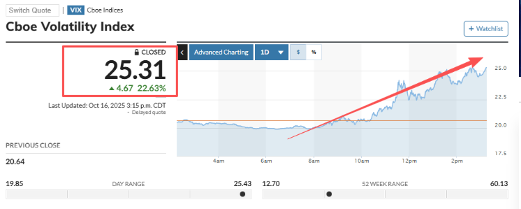 华盛顿新闻网10月17日消息,继昨晚美国银行区信贷担忧“雷霆”导致美国三大股指抢占之后,今日也拖累亚太主要股市集体下跌。其中,香港恒生指数盘中跌超2%,恒生科技指数跌4%。受此事件影响,被称为“恐惧指数”的标普500波动指数昨晚攀升22%至25上方,并刺激金价加速上涨,突破4300美元/盎司。目前市场担心2023年“硅谷银行”破产,这起“惊雷”是否会引发银行业进一步恐慌?在全球股市剧烈波动的背景下,投资者如何利用“指数”开仓抵御下行风险?本文将带你了解琼银13%的刺痛!华尔街“老大哥”已经吹响美国地区银行敲响了警钟。美国地区银行指数周四下跌6%,拖累美股指数周四盘中暴跌。美国两家汽车工业公司的亏损引发连锁反应,令市场担心“硅谷银行”在2023年破产。这一事件的对手锡安银行股价周四下跌13%。它宣布已为两笔发放的商业贷款计提了5000万美元的坏账准备。涉及Tricolor和First Brands破产的另外两家机构Alliance Western Bank和Jeffery周四也跌幅超过10%。事实上,早在几天前的周二,华尔街“老大哥”、美国最大投行掌门人戴蒙就对这一事件表示担忧,认为次级汽车贷款机构三色旗和汽车零部件供应商第一品牌破产后,将会有更多企业倒闭。这声明引发市场对信用风险的广泛关注。尽管本轮调整主要集中在中小银行,但高盛分析师担心,即使每一次危机事件都是孤立的,鉴于金融机构之间复杂的联系,风险也会蔓延到整个信贷领域。富国银行分析师迈克·梅奥(Mike Mayo)指出,整个银行业的信贷质量总体上仍被认为是良好的。然而,最近的事件表明,当信贷市场经历波动时,犯错的空间有限。金融板块ETF周四表现 $ XLF大型金融股票ETF -2.78% $ Fas 3倍多头金融板块ETF -8.34% $ KBWB银行股票ETF -3.64% $ BNKU 3倍多头大型银行股票ETF -6.84% $ KRE区域银行股票ETF -6.20% $ DPST3倍多头区域银行股票ETF -10.47% 数据来源:华盛证券、证券 证券、、证券、证券、证券、证券、Securities,截止日期:2025.10.17,当月最高20%!交易恐惧指数Vix,这里有十件事你应该知道: 进入Q3季度以来,贸易摩擦、美国政府倒台等突发事件持续影响全球股市。十月份,恐惧情绪飙升了很多倍。该指数用于衡量未来 30 天内预期市场波动水平 - 标准普尔 500 波动率指数 Vix。美国股市有专门追踪VIX指数的ETF。投资者可以利用此类ETF来追踪VIX指数。Tf间接在市场波动中进行交易,在细分指数标的0.5x空头恐惧指数ETF$SVXY-10.2%中很好地对账户进行了对冲。对于交易恐惧指数Vix,你应该知道这十件事:1、VIX指数是芝加哥期权交易所市场波动指数,也称为“恐惧指数” 指数。” 2.恐慌指数是标准普尔50指数的风险中性预期方差未来 30 天内的 0 指数,以年度标准差表示。 3. VIX 的真实面貌是百分比。例如,目前VIX指数为25.3%,这意味着市场投资者普遍“预期”标普500指数短期内(30天内)的年波动率为25.3%。 4、芝加哥期权交易所分析师Kevin Davitt表示,当VIX指数为48时,标普500指数日波动率约为3%。 5. VIX值较高并不表示熊市。相比之下,恐惧指标衡量市场波动的方向,包括积极的变化。 6、然而,VIX指数较高意味着投资者认为市场将出现剧烈的波动,无论正向还是负向。 7. VIX指数反映了投资者为应对投资风险愿意支付的成本。数字越高,付出的代价就越大。因此,它被用来表示投资者对后市的恐慌情绪。 8.VIX指数可能无法准确预测方向,但它确实在一定程度上反映了当时的市场环境。例如,1998年金融危机期间,VIX指数没有超过60。 9、通常当VIX指数超过40时,表明市场对未来并不恐慌,短期内可能会反弹。 10、当VIX低于20点时,表示投资者对后市持乐观态度。风险提示:值得注意的是,不少投资者在市场暴跌时选择上述$VXX或$UVXY作为卖出或对冲工具。在大多数情况下,这种方法很好。然而,在选择这些工具之前应该明确的一件事是,波动性的增加通常表明市场对未来存在很强的不确定性。一旦不确定性得到确认,即使市场继续下跌,做多VIX也可能无法达到对冲市场下跌的目的。另一方面,两只 ETF $VXX 和 $UVXY有一个天生的缺陷。他们追踪短期 VIX 期货的趋势。投资者长期持有将导致价值持续侵蚀。风险提示:投资涉及风险,证券价格可升可跌,甚至可能变得毫无价值。投资不一定能赚取利润,但可能会导致损失。过去的表现并不代表未来的表现。在做出任何投资决定之前,投资者应检查评估自己的财务状况、投资目标、经验、风险承受能力以及对相关产品的性质和风险的了解。有关个别投资产品的性质和风险的详情,请参阅相关销售文件以获取更多信息。如有任何疑问,应寻求独立专业建议。免责声明:华盛独家信息引用的数据或信息可能从第三方获得。华盛通会尽力确认数据来源的可靠性,但不排除对第三方提供的数据或信息的准确性负责,也不构成对任何证券、金融产品或工具的要约、招揽、建议、意见或任何保证。民三的证券价格变化很大。价格可能上涨或下跌,也可能一文不值。请投资者注意风险。使用本文档及任何内容时,应注明稿件来源于华盛通。华盛通所属深圳市时代华盛网络科技有限公司保留一切合法权利。