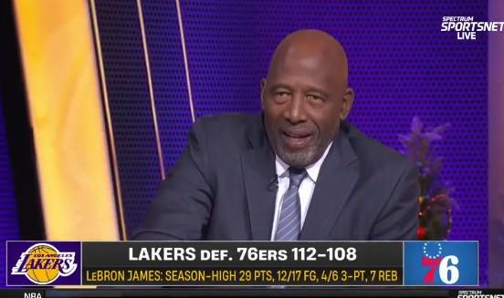 北京时间今天,NBA常规赛中,洛杉矶湖人队在客场以112-108击败费城76人队,避免了连败。担任本场比赛解说嘉宾的湖人队名宿詹姆斯·沃西赛后称赞勒布朗·詹姆斯整场比赛的出色表现。后者末节独得12分,帮助湖人队锁定胜局。沃西说:“我们正在见证一段令人惊叹的历史。” “这就是勒布朗本赛季的美妙之处。他在球场上为所欲为。他会首发,但当他看到年轻球员的天赋时,他会让他们发展。” “但是当他们需要老大哥挺身而出并控制比赛时,他就会这么做。他可以得分,他可以助攻,就像他再次领先一样。我认为他只是在关注球场上的情况,而他在这段时间里没有时间需要放松。当然,他没有放松。你知道,他有像卢卡(东契奇)这样的队友和重组。在34分钟12秒的时间里全场17投12中,得到29分6篮板6助攻1抢断1盖帽,三分球6中4,罚球2中1,有2次失误和1次犯规,正负值+1。 29分也是詹姆斯本赛季的新高。